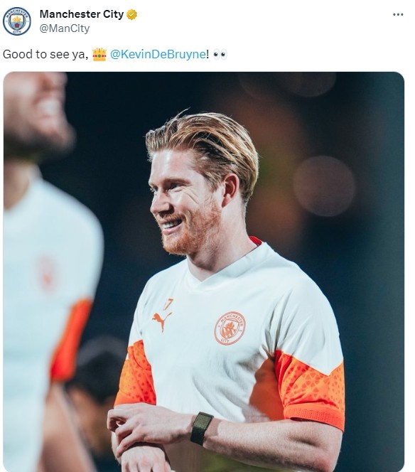伤缺了4个月!曼城官推晒照确认:德布劳内已经恢复训练