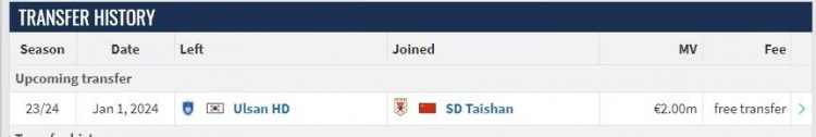 12月20日讯 根据德国转会市场网站页面显示,效力蔚山现代的格鲁吉亚边锋卡扎伊什维利将在2024年1月1日以自由身加盟山东泰山。