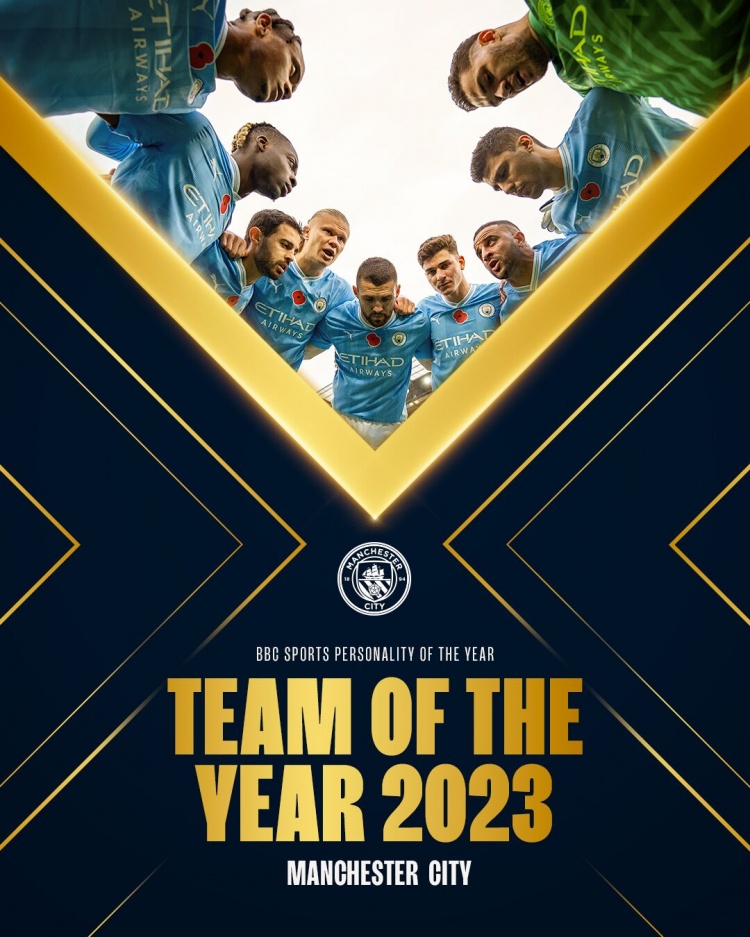 12月20日讯 BBC官方宣布,曼城当选2023年度BBC最佳体育团队。