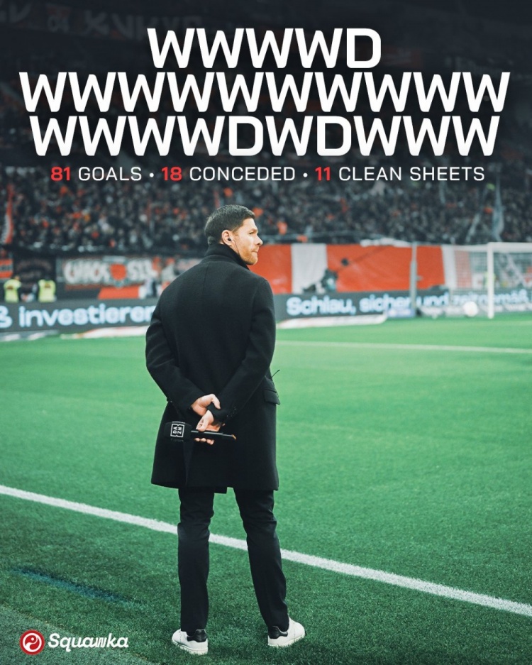 据统计,在赛季前25场比赛中,勒沃库森狂轰81球,同时只丢了18球,完成了11次零封。
