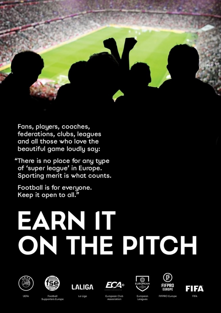 此前欧足联联合多个组织发布的反对欧超声明海报↓