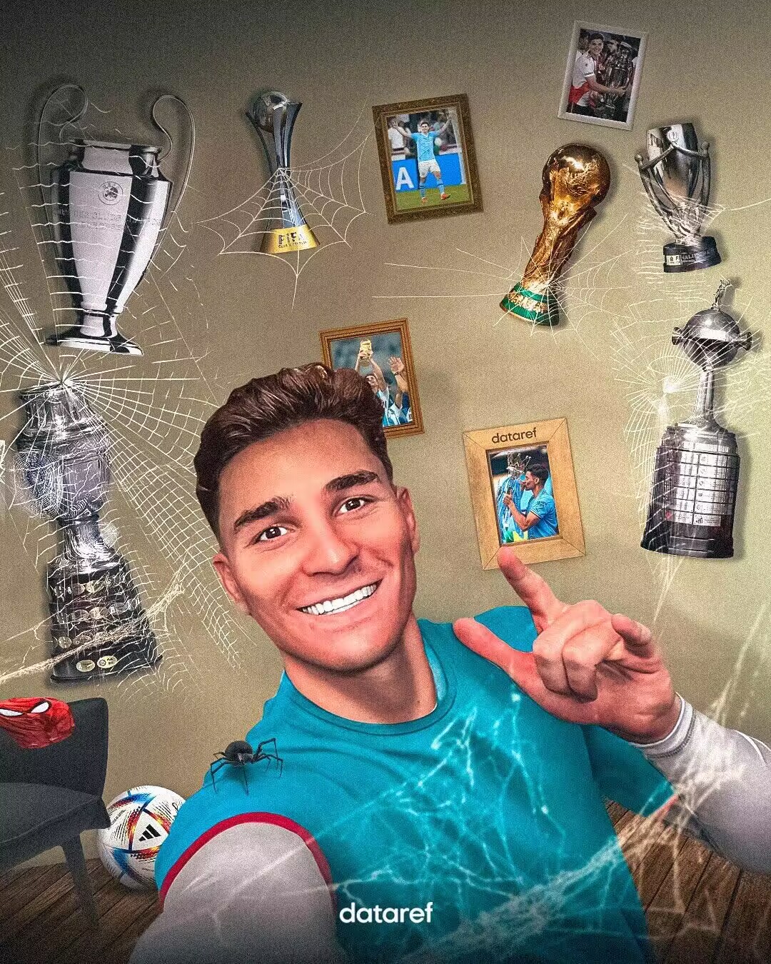 捧起世俱杯后,阿尔瓦雷斯荣誉簿上再添一项,23岁的他已经拿下了十四项冠军,其中包括世界杯、美洲杯、欧冠、英超等重量级荣誉。