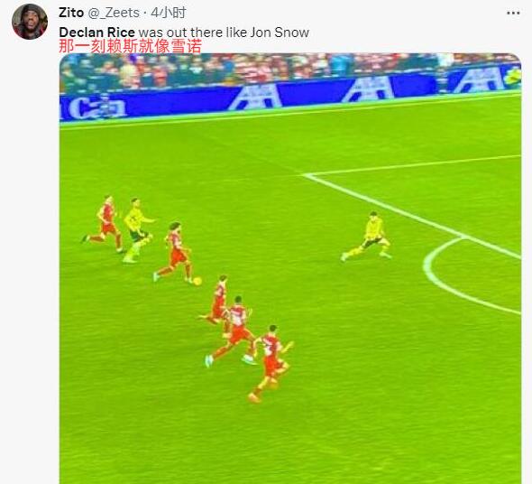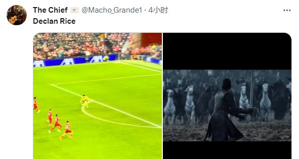 阿森纳1-1战平利物浦继续领跑,赖斯本场表现出色,受到球迷的称赞,很多人称他化身雪诺。