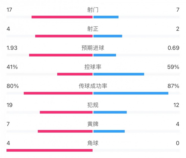 罗马2-0那不勒斯全场数据:犯规19-12,黄牌7-4,红牌0-2