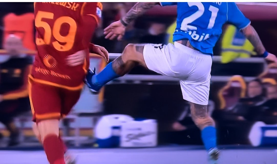 12月24日讯 意甲第17轮,罗马主场迎战那不勒斯,比赛第66分钟,波利塔诺对抗中对着扎莱夫斯基来了一脚“飞踢”报复动作,被裁判直红罚下。