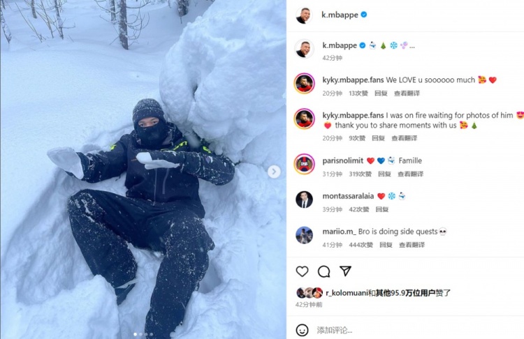 12月26日讯 姆巴佩更新了社媒动态,晒出自己在平安夜-圣诞节期间和弟弟伊桑-姆巴佩外出去雪地森林过节的照片。姆巴佩表示道:⛄️