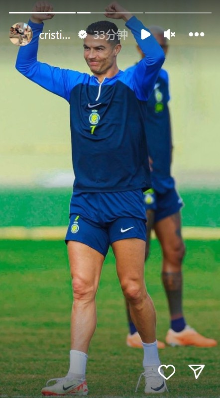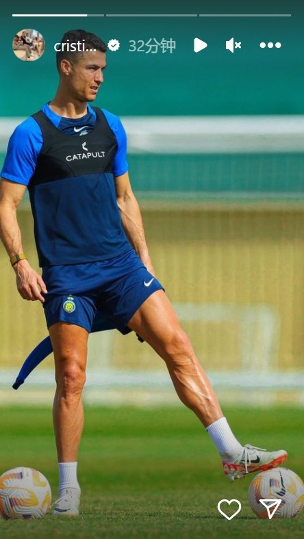 12月26日讯 沙特联赛本周迎来一周双赛,C罗晒出训练照。