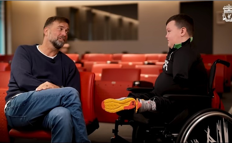 这名12岁的孩子患有罕见的克罗梅林综合症,并且需要一直使用轮椅,本月早些时候,克洛普亲自邀请他和他的家人来到默西赛德郡。