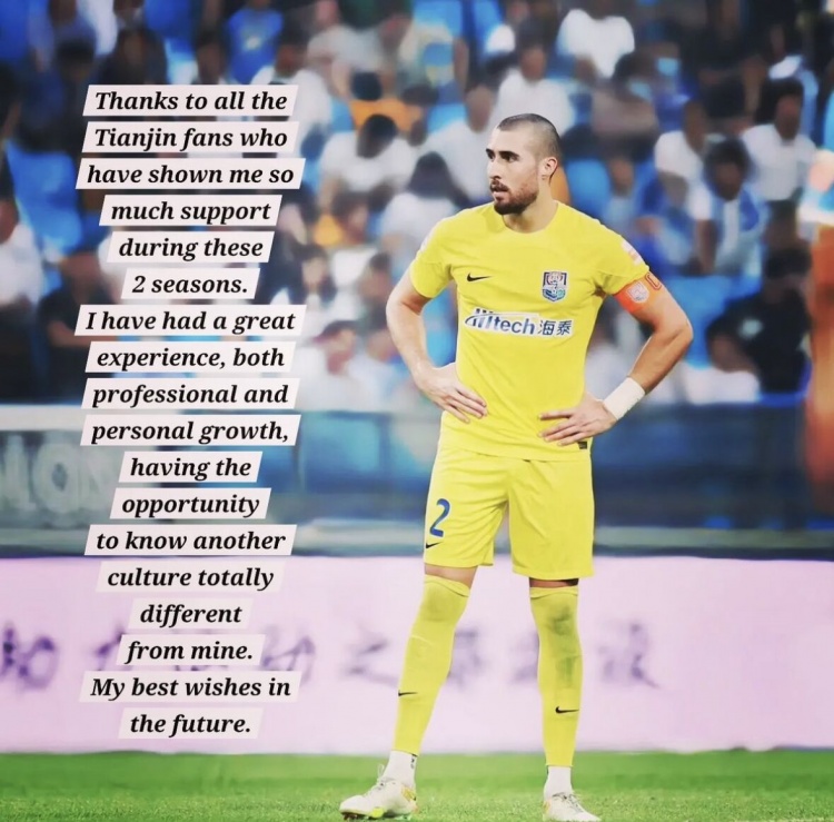 安杜哈尔在社媒告别写道:“谢谢所有天津球迷在这两个赛季给我的支持,这是一段非常愉快的经历,不论是专业性还是我的个人都成长了很多,让我也有机会去了解一个完全不同的文化。为未来献上我诚挚的祝福。”