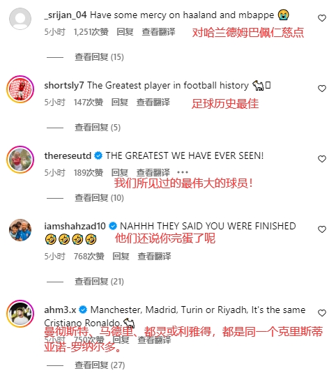 沙特联最新一轮,利雅得胜利5-2战胜吉达联合。C罗本场比赛梅开二度,在2023年已经打进53球,登顶2023年射手榜。国外球迷在社媒对此展开热议: