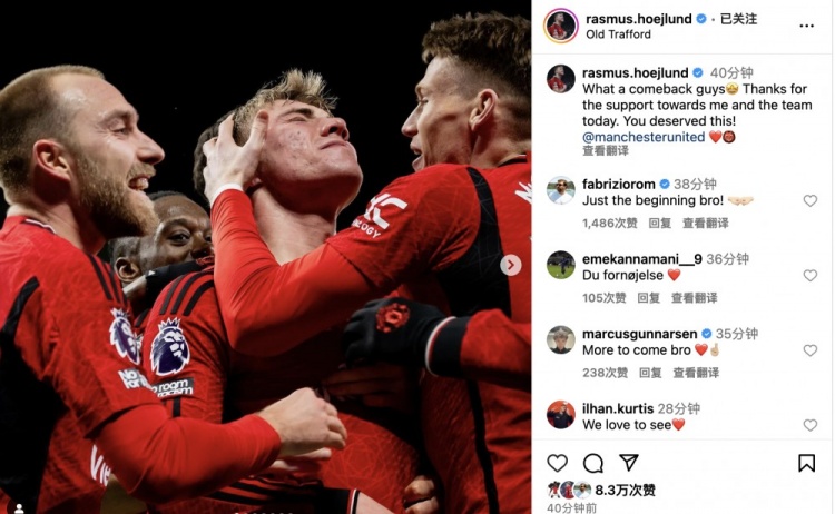制胜功臣!霍伊伦发文庆祝:曼联配得上这场胜利❤️