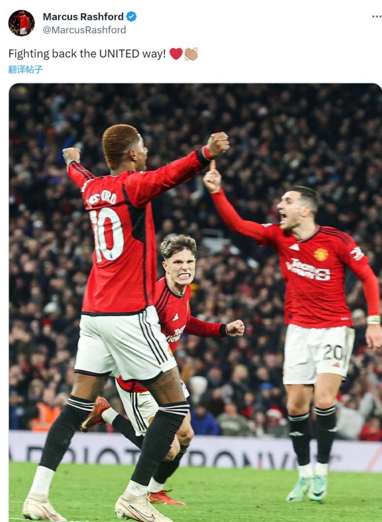 拉什福德社媒庆祝胜利:以曼联的方式逆转❤️