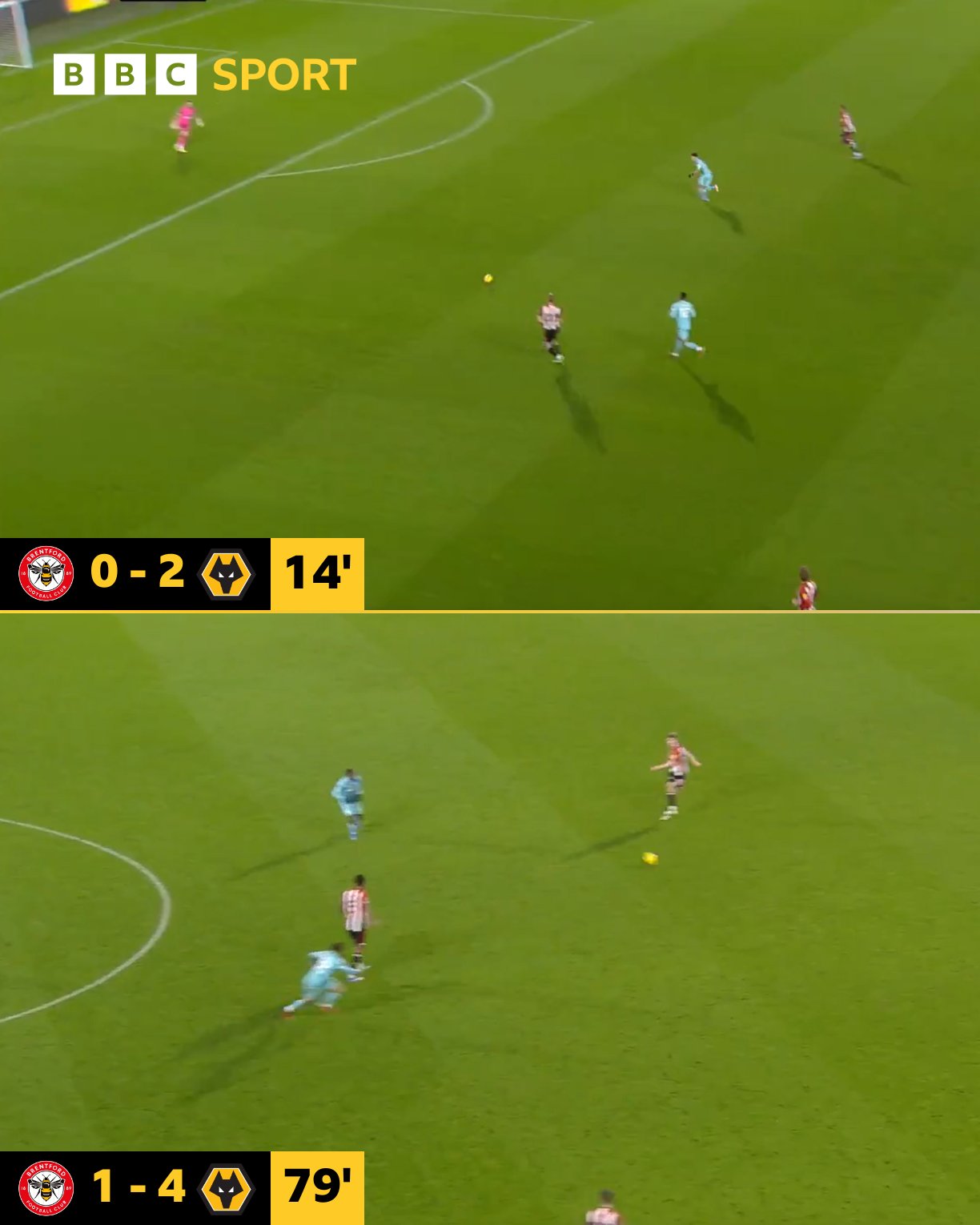 12月28日讯 英超第19轮,布伦特福德主场1-4不敌狼队,小蜜蜂中卫内森-柯林斯(22号)面对老东家多次出现致命失误导致丢球。