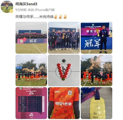 带领泰山U17问鼎中青赛冠军,周海滨社媒晒照:未完待续
