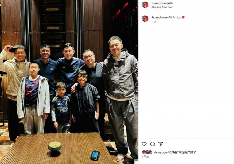 近期,保利尼奥时隔多年返回了广州,与昔日队友冯潇霆、李学鹏以及黄博文等人重聚。昨天,黄博文在社媒晒出了这次大家广州相聚的合影,为此配文“兄弟”并附上了爱心的表情。