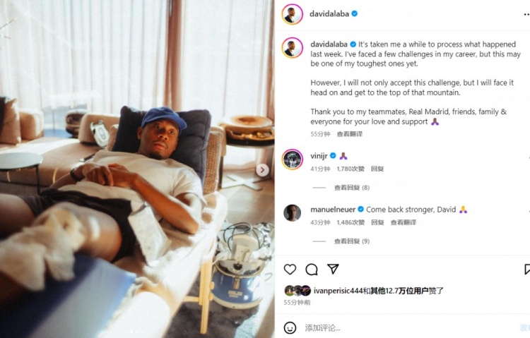 12月30日讯 阿拉巴遭受左膝前十字韧带撕裂,并已经成功接受手术,接下来他将面临长期的恢复。目前,阿拉巴更新了自己的社媒动态。阿拉巴:“我花了一些时间来消化