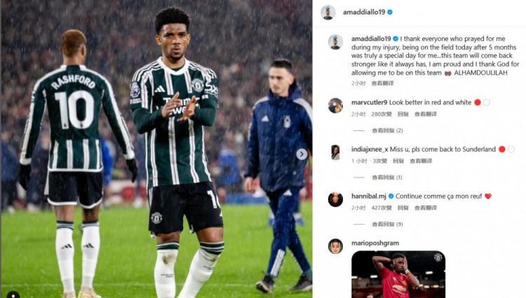 阿玛德-迪亚洛:“我感谢所有在我受伤期间为我祈祷的人,5个月后的今天对我来说真的是特别的一天。这支球队会像往常一样变得更加强大,我很自豪,我感谢上帝让我加入这支球队。”