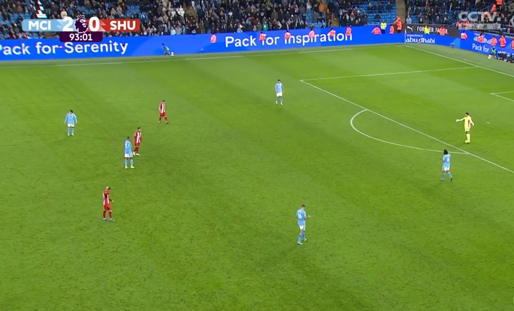 12月31日讯 英超第20轮,曼城2-0谢菲联。比赛90分钟后,记分牌未给补时时间,但比赛补时至第3分钟时主裁判吹响结束哨音。