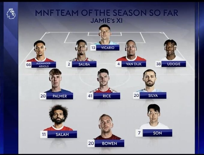 卡拉格评本赛季英超至今最佳阵:孙兴慜、萨拉赫领衔,赖斯入选