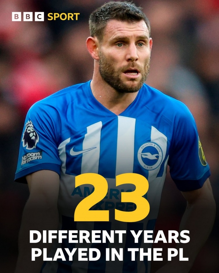据BBC统计,现年37岁的米尔纳23个不同年份都在英超比赛中出场,追平吉格斯创造的英超出场年份纪录。
