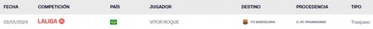 1月4日讯 巴萨官方确认,西甲已经为罗克完成了注册,球员将可以出战下一场比赛。