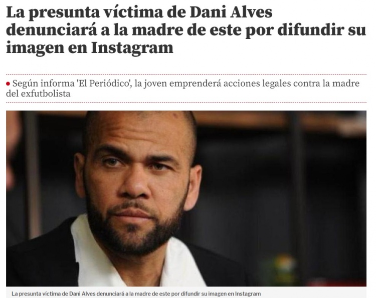 1月5日讯 《世界体育报》报道,上周末阿尔维斯的母亲在社媒非法传播阿尔维斯性侵案受害者的照片和信息,受害者谴责这种行为并将就此提出上诉。