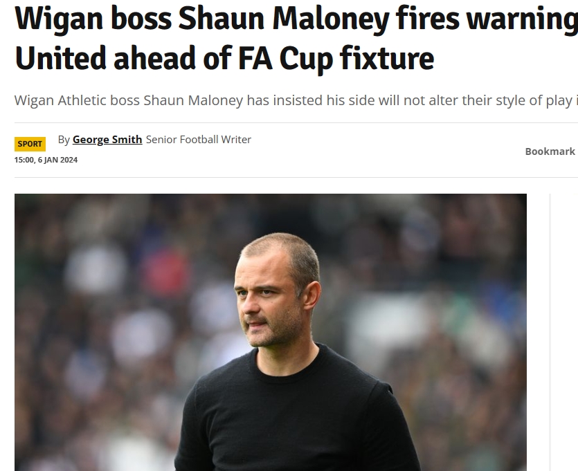 维冈主帅谈足总杯战曼联:不会改变我们有球时的比赛方式