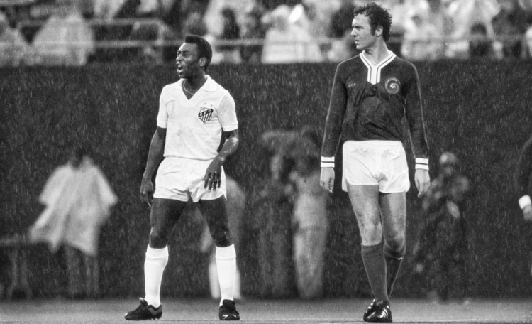 两位传奇!贝利母队桑托斯悼念贝肯鲍尔:永恒的德国传奇