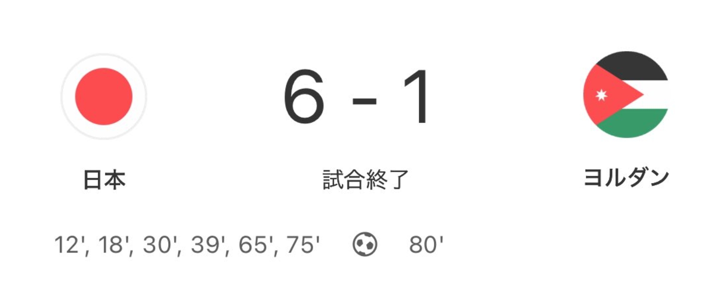 为日本队进球的分别为:板仓晃(12')、中村敬斗(17')、对手乌龙(29')、南野拓实(43')、浅野拓磨(71')、前田大然(81')。