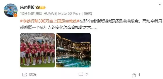 前大连人球员朱晓刚在社媒写道:“在那个时期我对铁哥还是满满敬意,而如今我只能感慨一个成年人的变化怎么会如此之大。。 ”