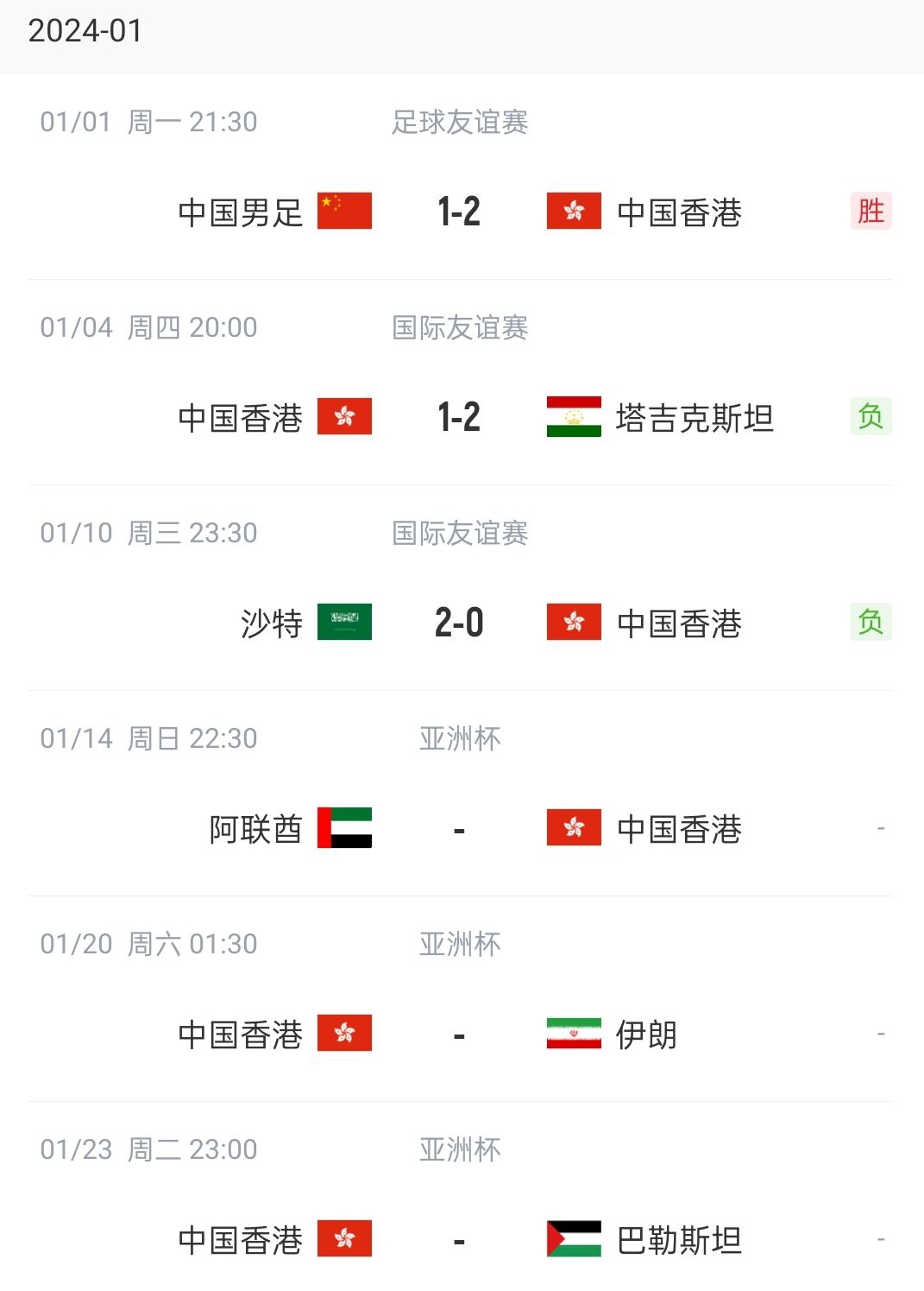 热身赛:中国香港队0-2不敌沙特,亚洲杯前3场热身赛1胜2负