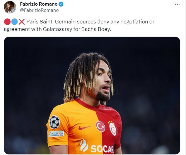 此前土耳其媒体HT报道称,加拉塔萨雷球员萨沙-博伊将加盟巴黎,转会费为2000万欧元。