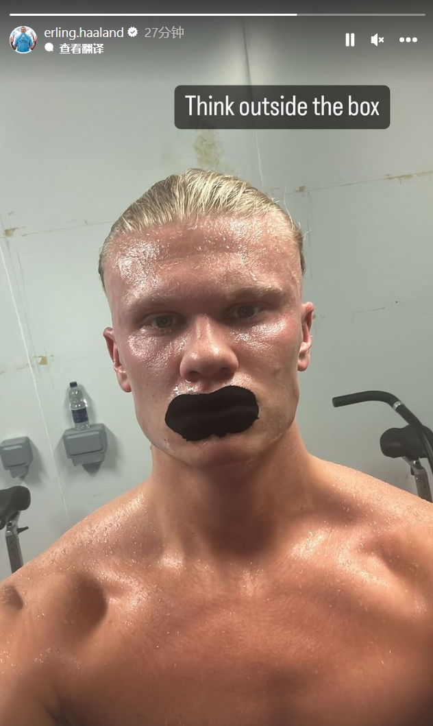 在个人社媒上,哈兰德晒出自己半裸上身的照片,同时嘴唇被完全涂黑,这位曼城前锋写道:“打破常规”。
