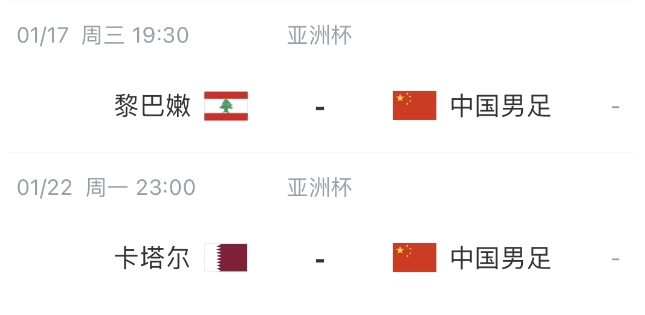 国足剩余赛程:17日对阵黎巴嫩,22日末轮对决东道主卡塔尔