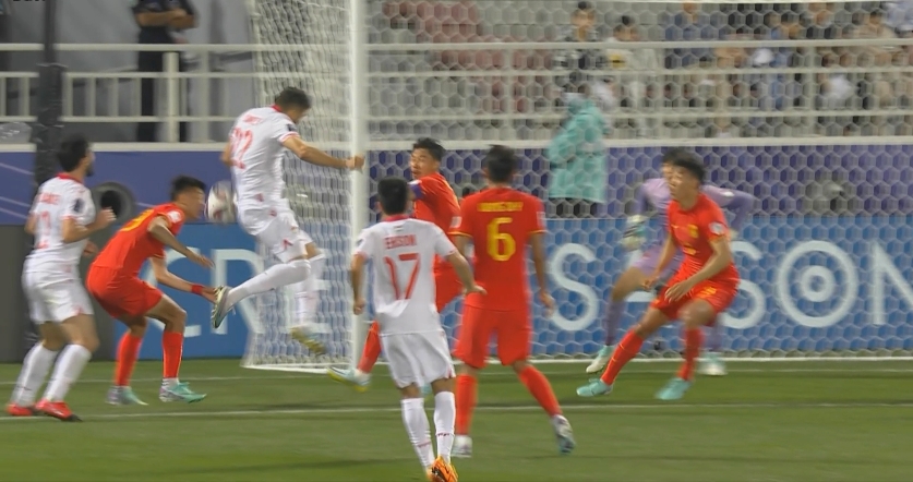 疯狂要点球!塔吉克头球顶到刘洋脸上,塔吉克球员疯狂示意是手球