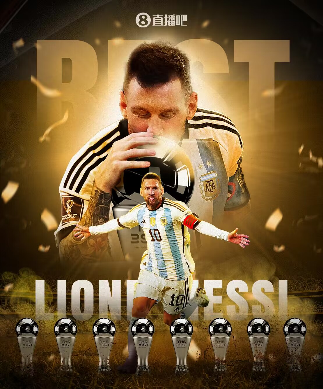 1月16日讯 FIFA年度颁奖典礼,梅西当选2023世界足球先生,他击败了3人候选中的哈兰德和姆巴佩。生涯第八次获得该奖。