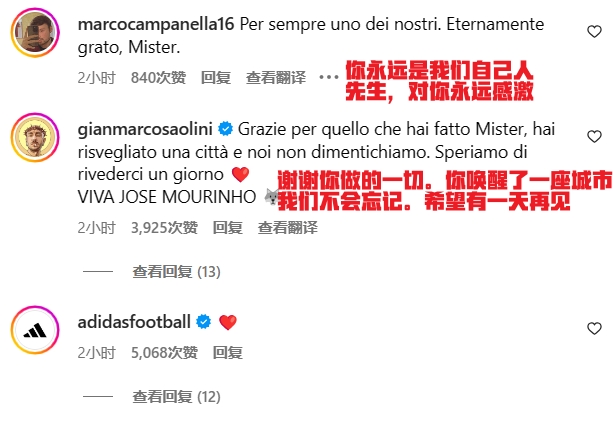 不少球迷在社媒下留言,对穆帅表达自己的感谢,并向其告别↓
