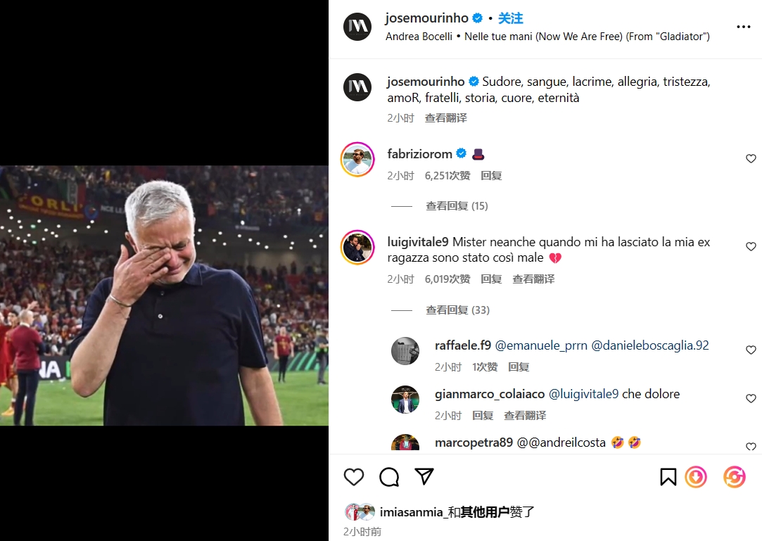 哭了穆帅晒落泪照告别罗马!球迷叹:和女朋友分手都没这么糟