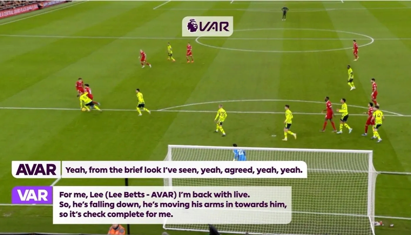 英超第18轮,利物浦主场1-1战平阿森纳,上半场厄德高禁区内用手拍球未判。