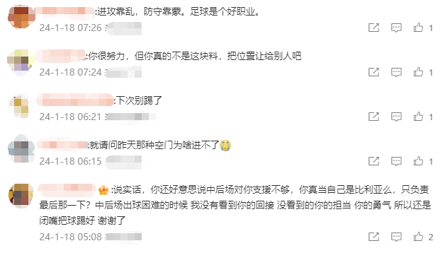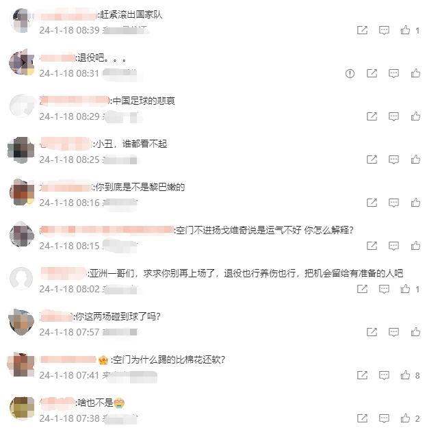 亚洲杯小组赛第二轮,国足0-0战平黎巴嫩。武磊本场比赛发挥不佳, 还错失了一次门前的绝佳破门机会。比赛结束后,大量网友在武磊个人社媒下面留言,对武磊进行了