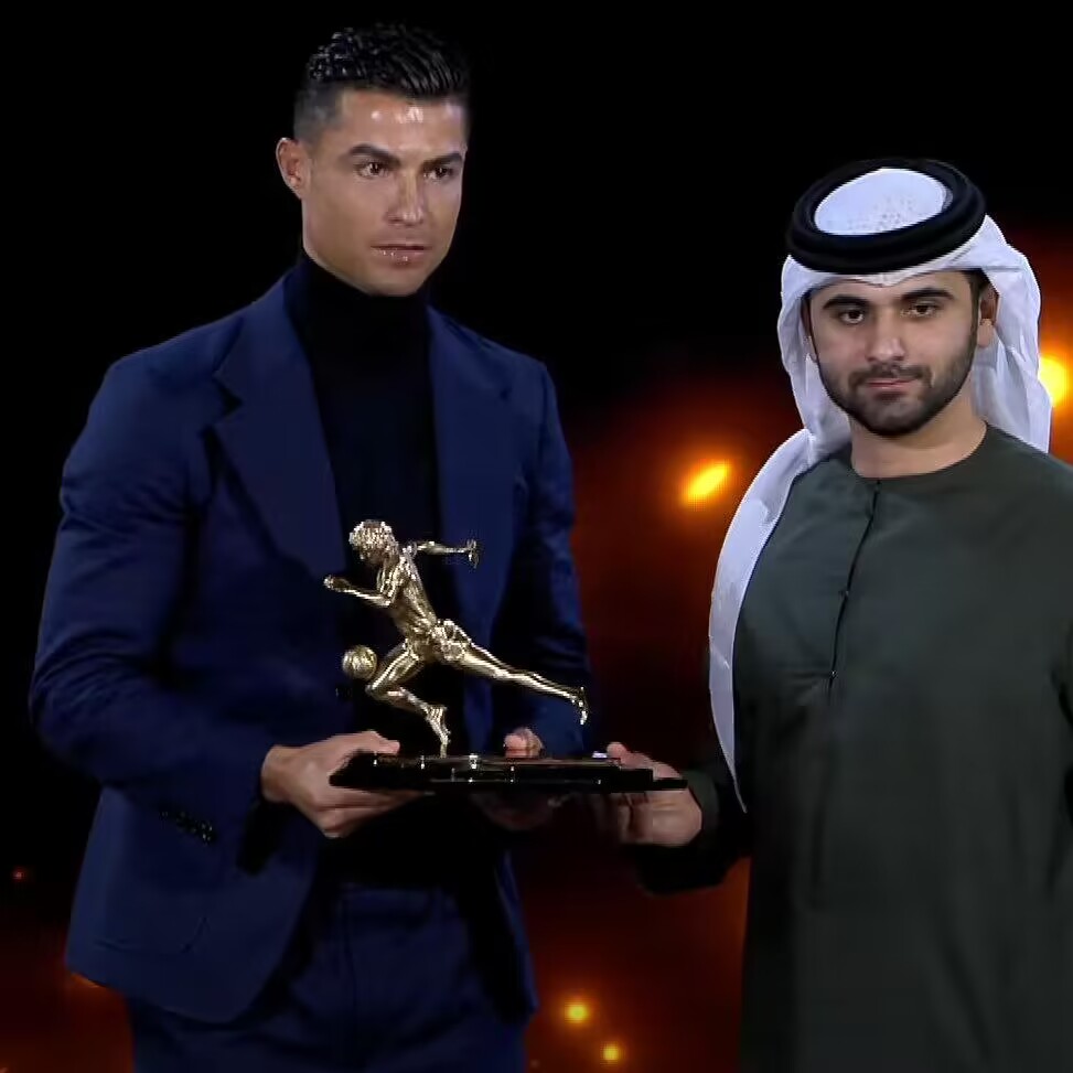 荣耀!C罗领取环球足球最佳射手奖