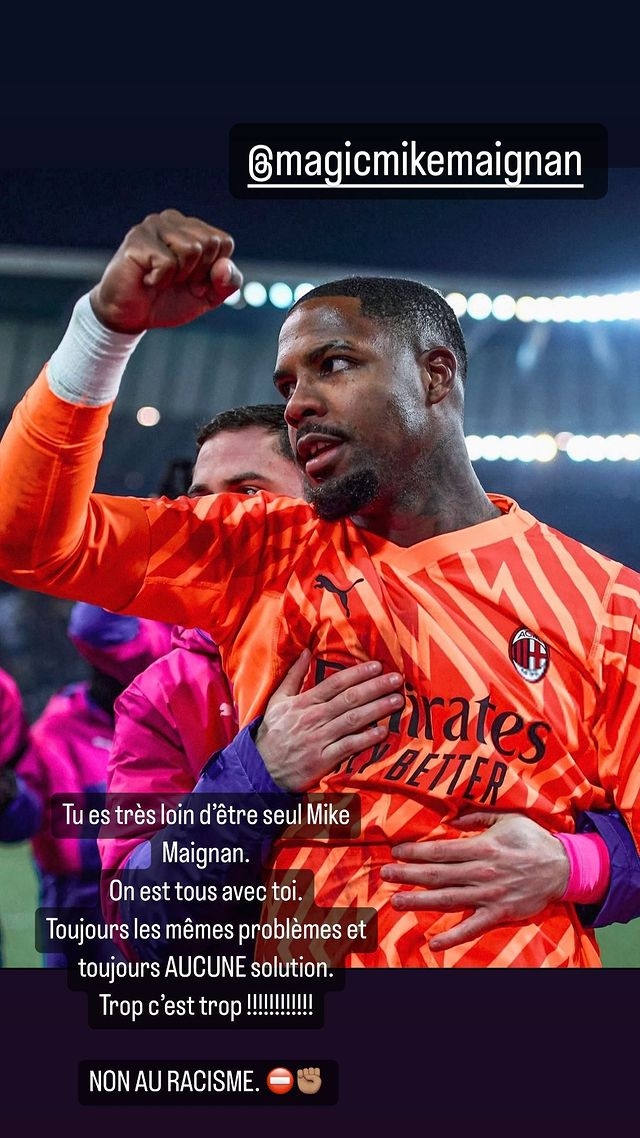 01月21日讯 意甲第21轮,AC米兰客场3-2逆转绝杀乌迪内斯,米兰门将迈尼昂本场比赛遭受球迷的种族歧视攻击,比赛一度因此中断将近5分钟。赛后,姆巴佩发文声援国家
