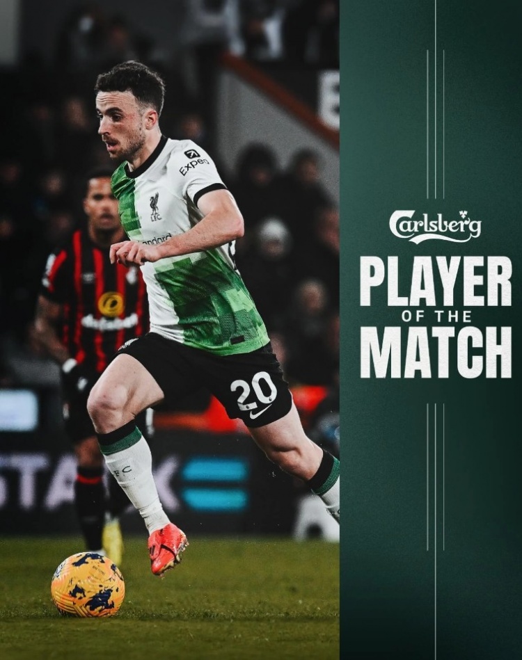 2射1传助球队大胜!若塔当选利物浦vs伯恩茅斯赛后全场最佳球员!
