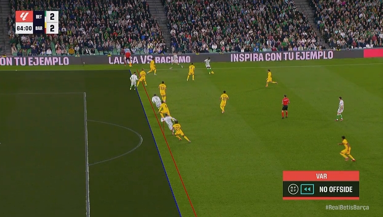 01月22日讯 西甲第21轮,巴萨客战贝蒂斯,比赛第59分钟,伊斯科小角度挑射破门,裁判查看VAR后判罚进球有效。贝蒂斯3分钟连扳2球2-2巴萨。