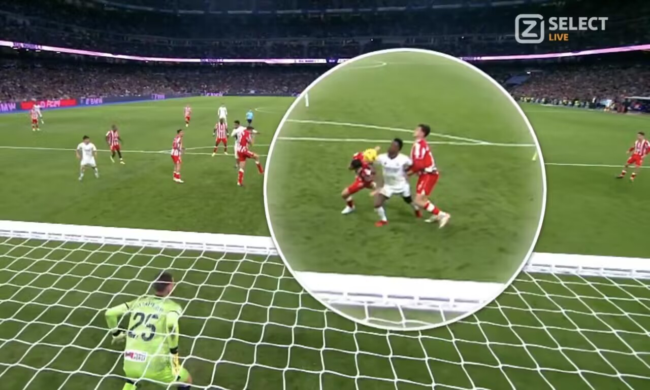 连扳两球!维尼修斯肩膀破门,裁判看VAR后判进球有效