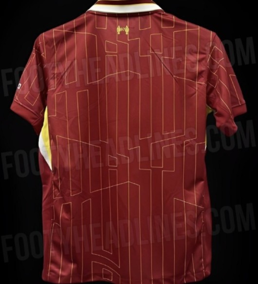 1月23日讯 footyheadlines近日曝光了利物浦2024-25赛季主场球衣谍照。新赛季利物浦主场球衣依然是球队传统的红色为主色调,细节处则由黄色和白色点缀,其中队