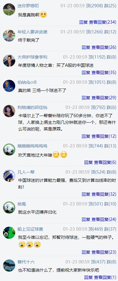 叹不争气!吧友热评国足:终于熬完了,我是真贱啊!大家新年快乐