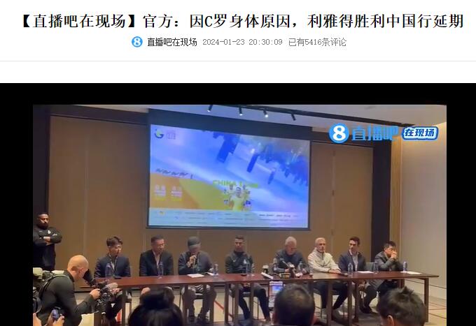 利雅得全队21号抵达深圳,23号宣布因C罗受伤比赛延期......
