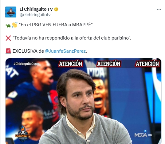 01月24日讯 西班牙记者Juanfe Sanz Perez在六台节目上透露,姆巴佩没有回应巴黎的续约报价。