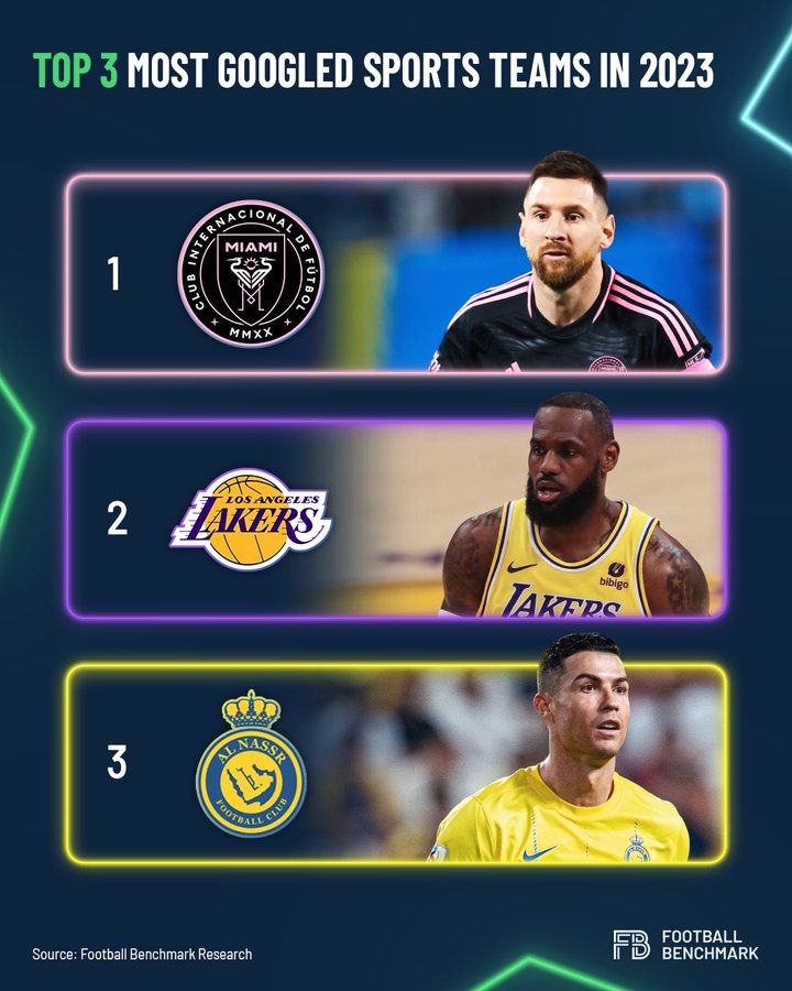 梅罗效应!2023被搜索最多球队:迈阿密国际居首 利雅得胜利第三